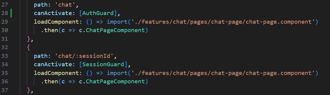 Regardez la configuration de routes de FinEd Mentor : app.routes.ts. On y voit des components chargés à la demande et des guards :